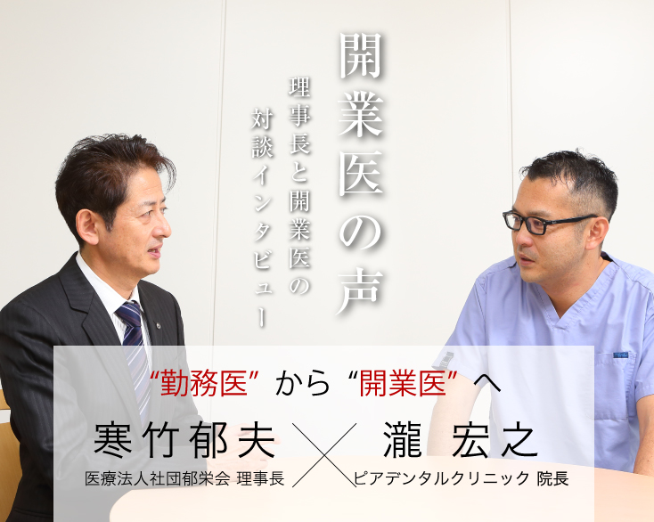 郁栄会には、分院長や歯科医師として勤務するだけでなく、開業医として独立するなど、さまざまな道が開かれています。いろいろな選択肢がある郁栄会の魅力を、理事長と独立開業した先生に語っていただきます。
